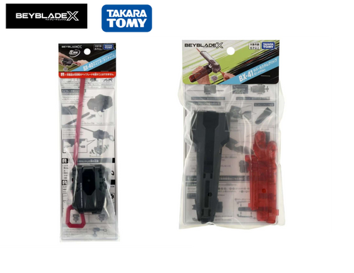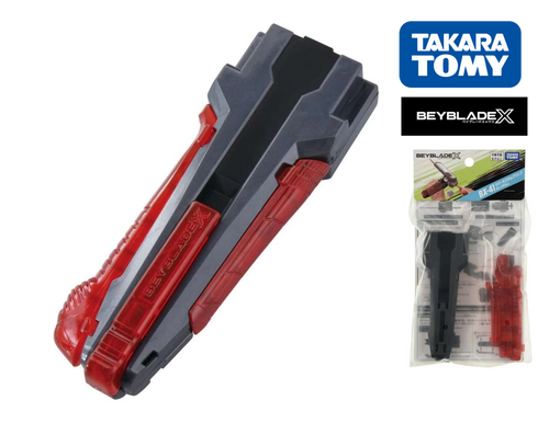 Takara Tomy Beyblade X BX-40 Left Spin Ripcord Launcher & BX-41 Rubber Custom Grip (Gunmetal Version)