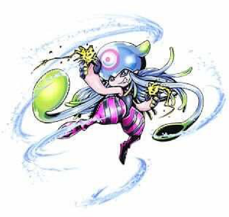 Jellymon is a Mollusk Digimon. It has a squishy head like a jellyfish. The body is flexible, which allows it to retract its body into its head. When it is just its head, it is light enough to fly with the wind. It prefers beautiful environments and actions, and once it sees foul behavior, it frees its body in anger and turns into its Battle Mode with its countless tentacles.