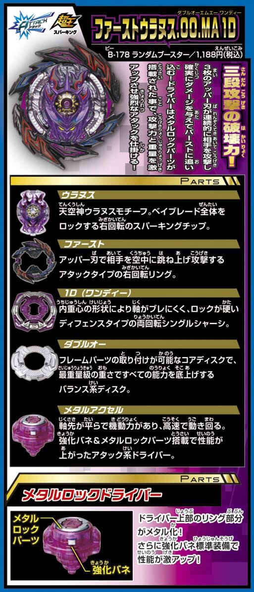 Genuine New Japanese Takara Tomy Japan Beyblade Burst Surge B-178 01 First Uranus 00 Metal Accel 1D