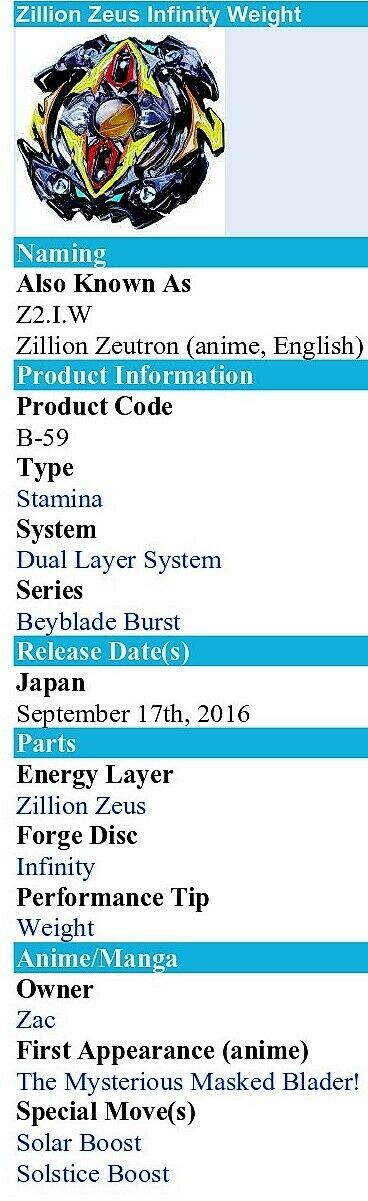 GENUINE JAPANESE Takara Tomy Beyblade Burst B-59 Starter Zillion Zeus Infinity Weight Right Spin (Stamina Type)