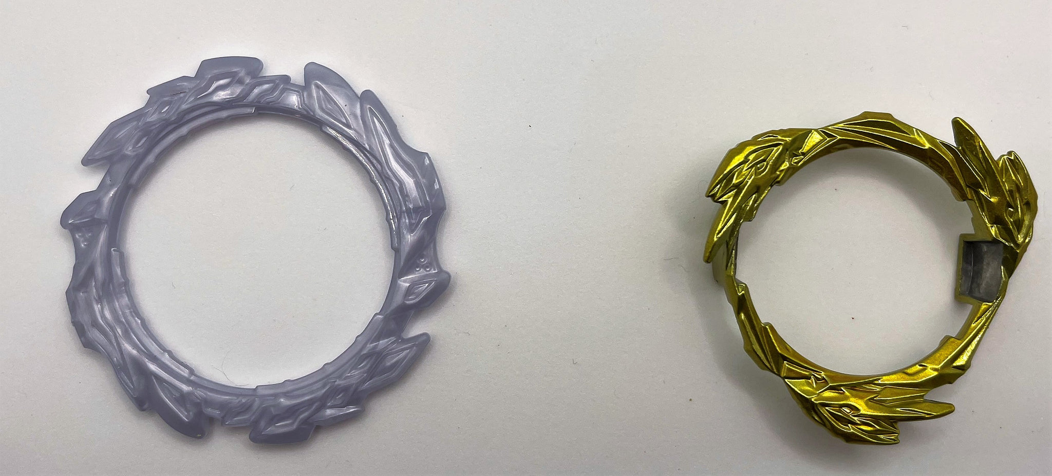 "A Stamina Type Disc that supports Low Mode. It has smooth edges that slope downwards to help stabilize the Beyblade."